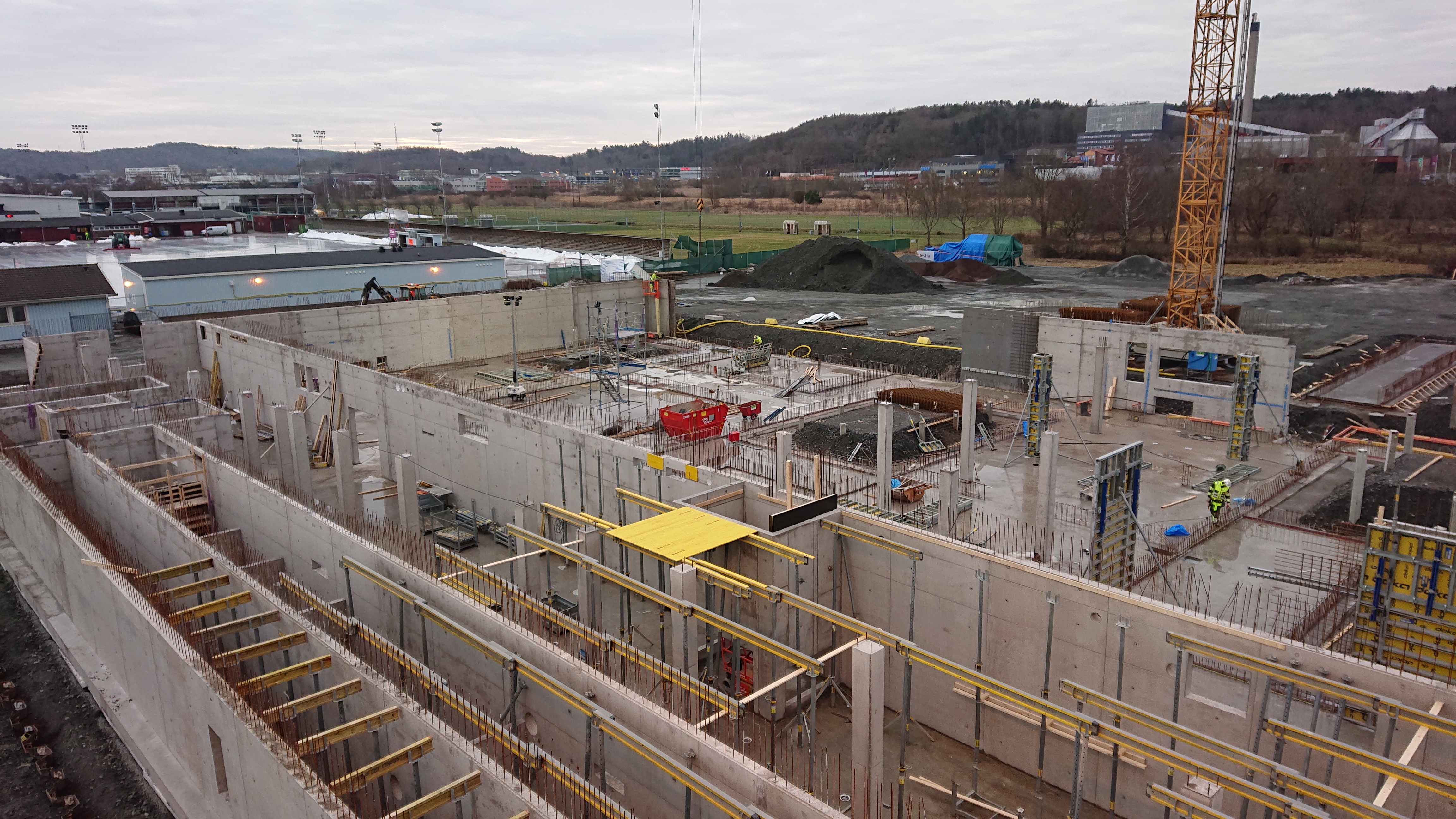 Ljuset börjar komma tillbaka, känslan är att våren är på väg! Bottenplattorna är klara och väggarna växer fram, nästa vecka börjar vi